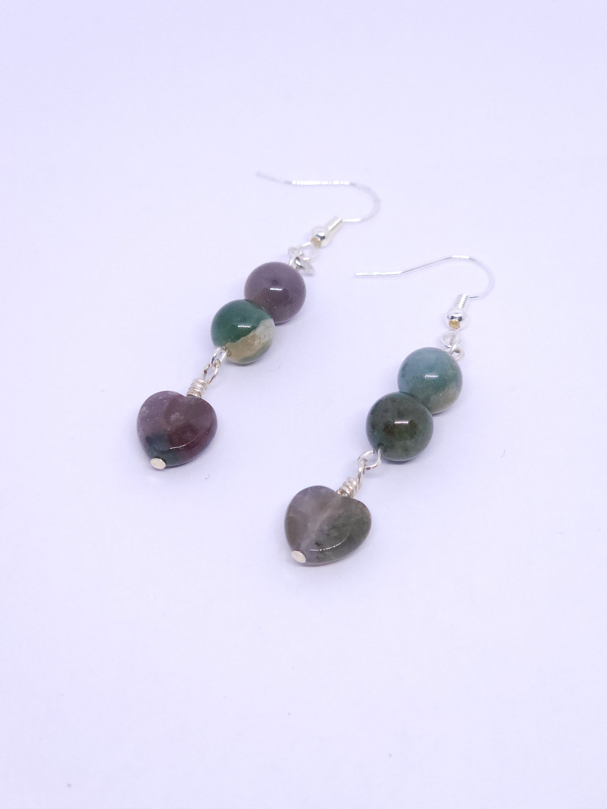 - Each earring features a stunning Indian Agate heart-shaped gemstone, carefully chosen for its unique patterns and colors.