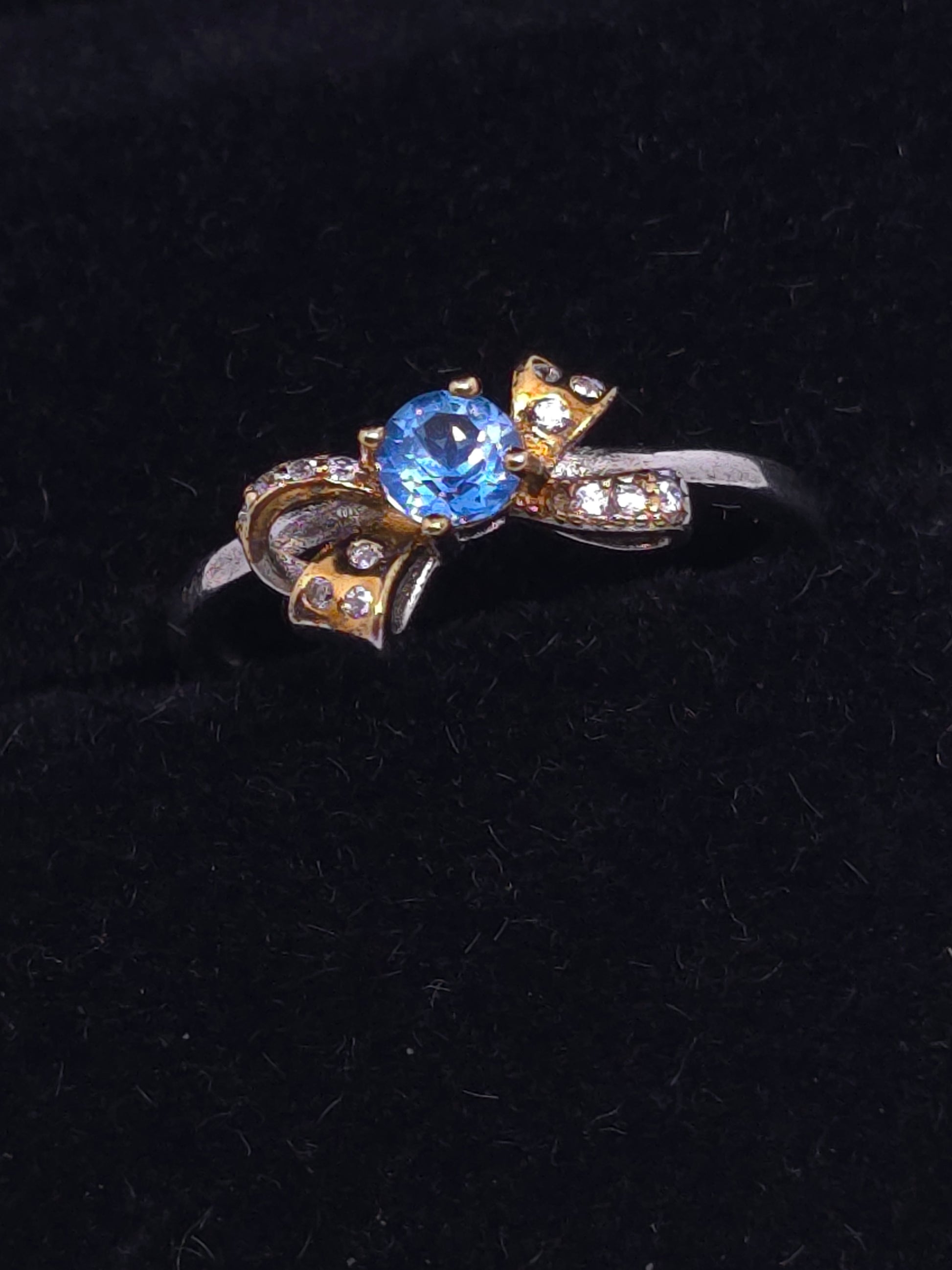 Perfect as a thoughtful gift or a personal statement piece, the Sky Blue Topaz Bow Ring captures the essence of refined charm and timeless beauty, suitable for any occasion.