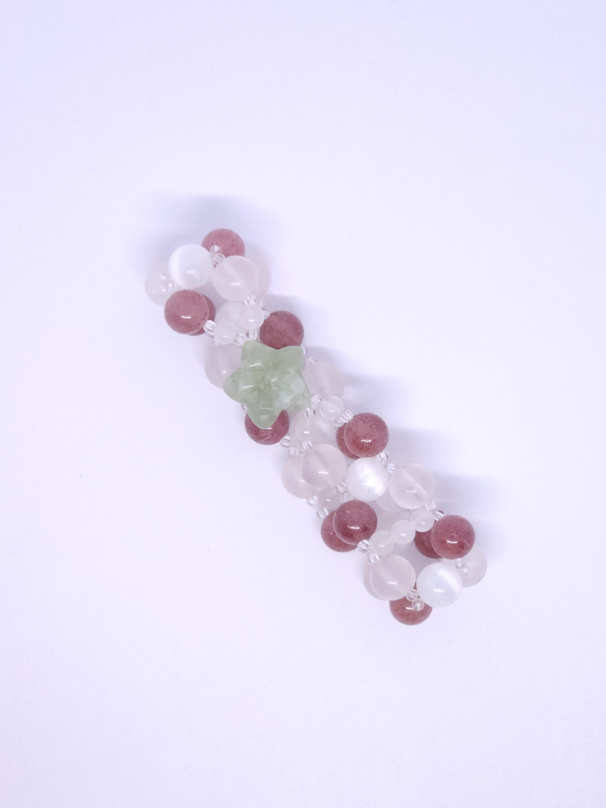 - This triple-layer bracelet showcases the harmonious fusion of rose quartz, strawberry quartz, selenite, and white jade, each gemstone carefully chosen for its unique attributes and harmonizing qualities.